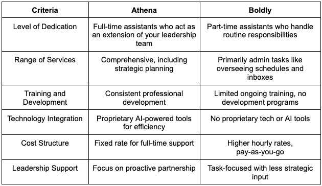 Athena and Boldly have their own approaches to executive assistance.