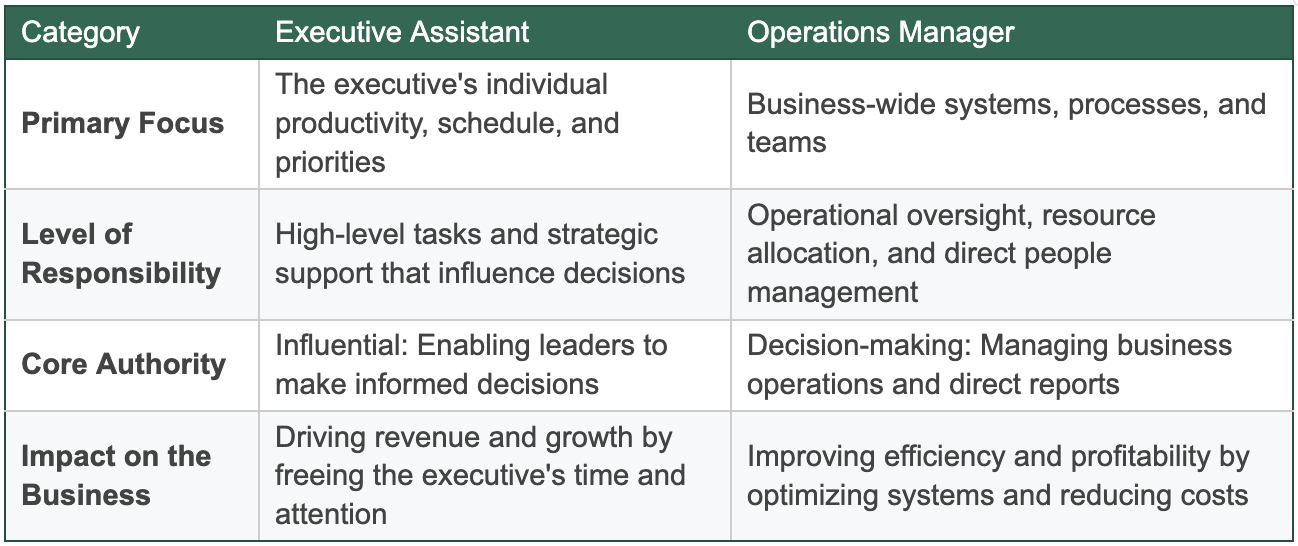 Key Differences Between Executive Assistants and Operations Managers