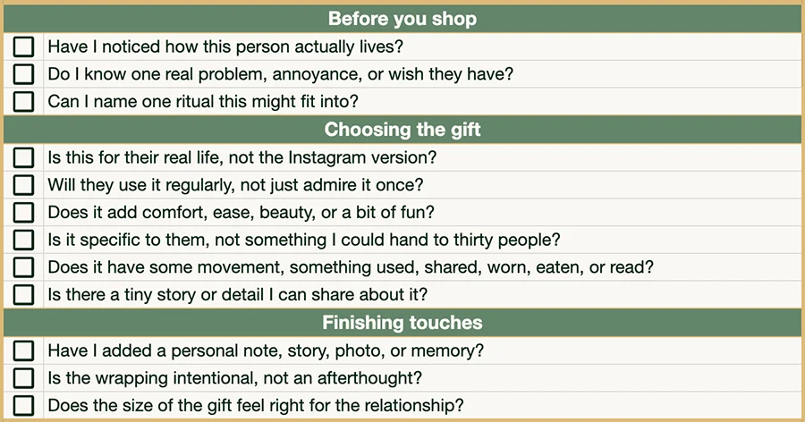 Over time, gifting stops being a December problem and becomes a quiet part of how you pay attention to the people you care about.